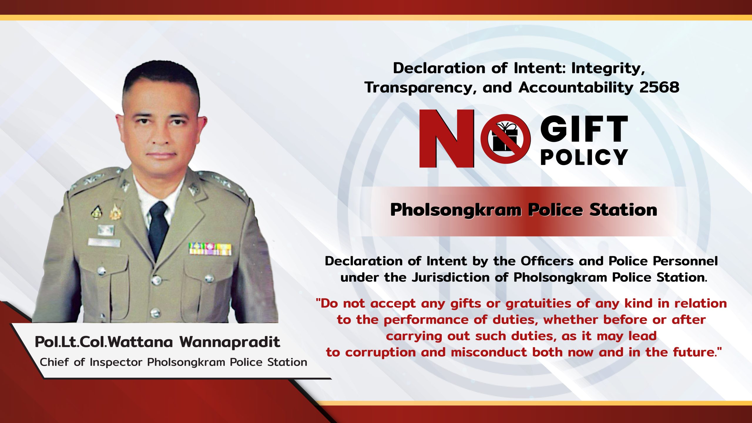 กำชับการปฏิบัติตามโยบายการต่อต้านการรับสินบน ก่อนออกปฏิบัติหน้าที่ของเจ้าหน้าที่สายตรวจ ว