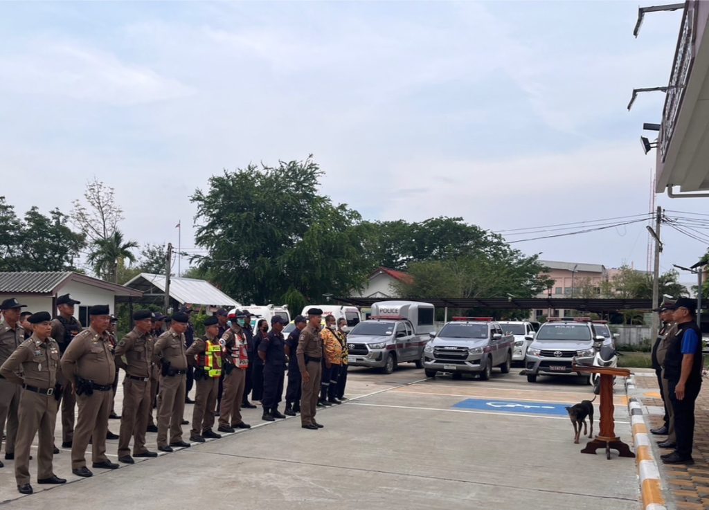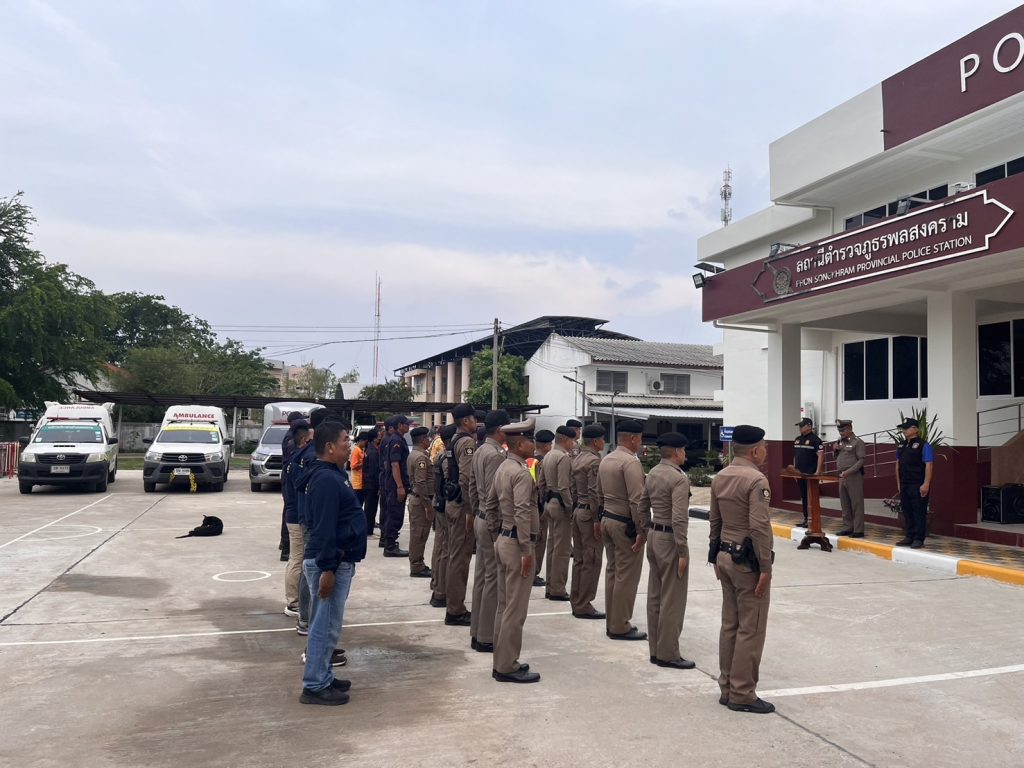 วันที่ ๑๐ เม.ย. ๒๕๖๘ เวลา ๑๖.๐๐น. พ.ต.ท.วัฒนะ วรรณประดิษฐ์ สวญ.สภ.พลสงคราม พร้อมด้วย พ.ต.ท.ปัญญา แสงสุระ สวป.,พ.ต.ท.วีระคม รัตนปิโยสร สว.สส. พร้อม ผู้ใหญ่บ้าน ,ผู้ช่วยผู้ใหญ่บ้าน พร้อมอาสาสมัครรักษาดิน ,อปพร.ตำบลมะค่า,อปพร.ตำบลพลสงคราม,หน่วยกู้ชีพกู้ภัยตำบลมะค่าและพลสงคราม และข้าราชการตำรวจ สภ.พลสงคราม ปล่อยแถวเพื่อรักษาความปลอดภัยและอำนวยความสะดวกด้านการจราจร ช่วงเทศกาลสงกรานต์ ประจำปี ๒๕๖๘ บริเวณหน้า สภ.พลสงคราม