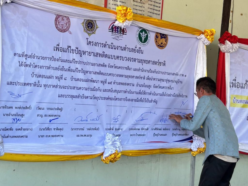 พ.ต.ท. วัฒนะ วรรณประดิษฐ์ สวญ.สภ.พลสงคราม สั่งการให้ พ.ต.ท.ปัญญา แสงสุระ สวป.ฯ พ.ต.ท.วีระคม รัตน์ปิโสสร สวย.สส.ฯ คนสงคราม 2-0 สายตรวจ ชุดสืบสวน พร้อม ข้าราชการตำรวจสภ.พลสงคราม ร่วมกับนายอำเภอโนนสูง พัฒนากรอำเภอ กำนันตำบลพลสงคราม ผอ.รพ. สต.มะรุม ผู้ใหญ่บ้านดอนแฝกหมู่ 8 และหมู่ 15 และประชาชนบ้านดอนแฝกหมู่ 8 และหมู่ 5 ร่วมกันทำพิธีเปิดศูนย์ตำบลยั่งยืนบ้านดอนแฝกหมู่ 8 หมู่ 15 ต.พลสงคราม อ.โนนสูง จ.นม.