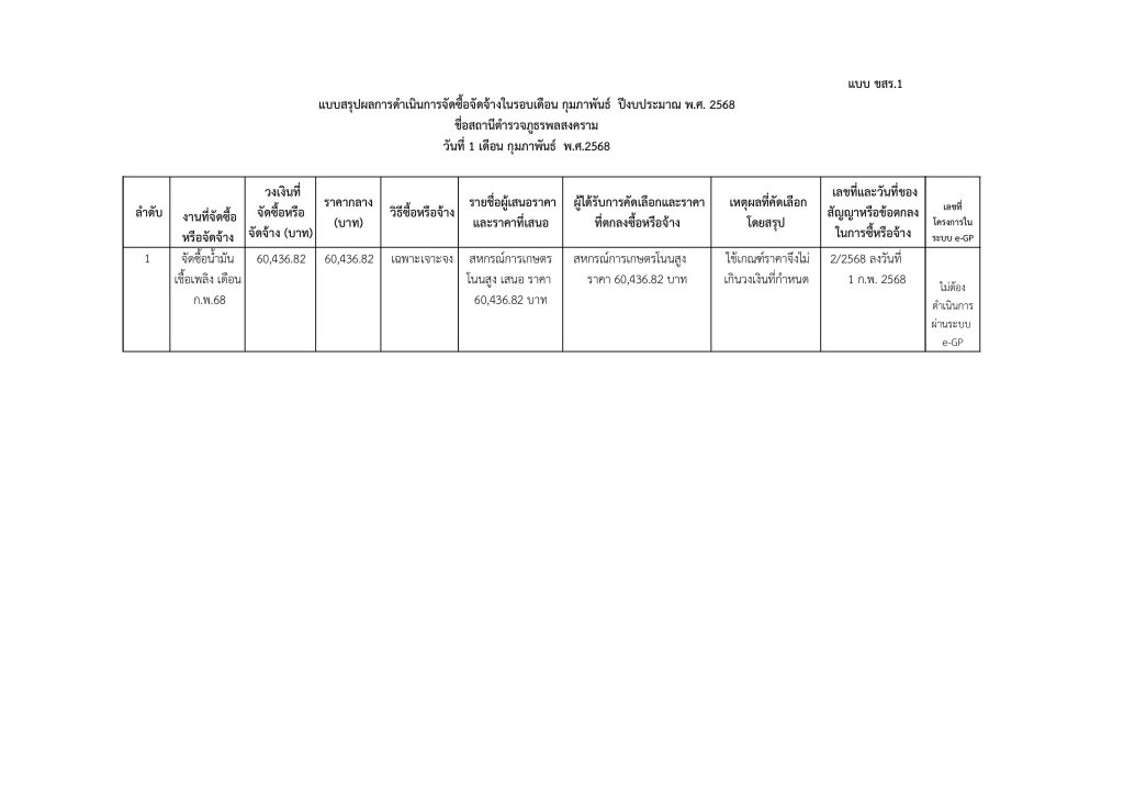 สรุปผลการจัดซื้อจัดจ้าง เดือน กุมภาพันธ์ 2568