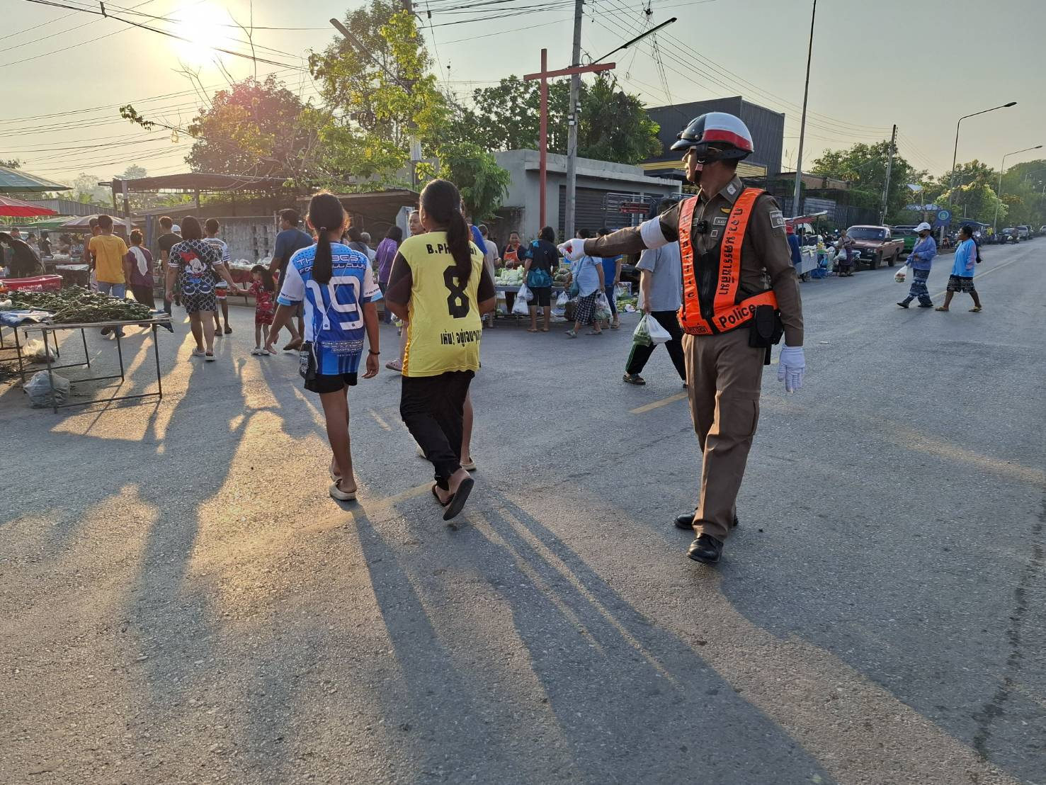 อำนวยความสะดวกการจราจรตลาดนัดหนองม้าวันที่ 8 มี.ค.2568 เวลา 07.00 น. เจ้าหน้าที่ตำรวจจราจร สภ.พลสงคร