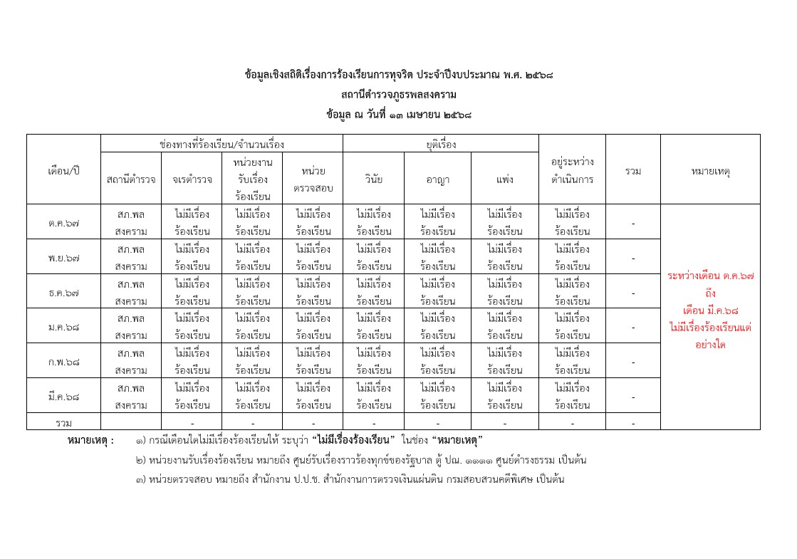 O17 ช่องทางการแจ้งเรื่องร้องเรียนการทุจริตและข้อมูลเชิงสถิติเรื่องร้องเรียนการทุจริต